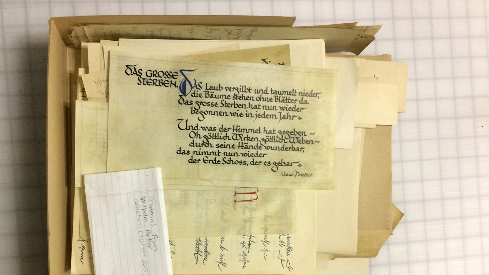 Many times, damage is not necessarily caused by the environment or by the wrong materials, but by human error. Be very careful when folding or unfolding papers, as the folding lines will become tears over time. Don't use tape or metal clips, staples, or post-it notes on any of your objects as they are highly damaging in the long term.