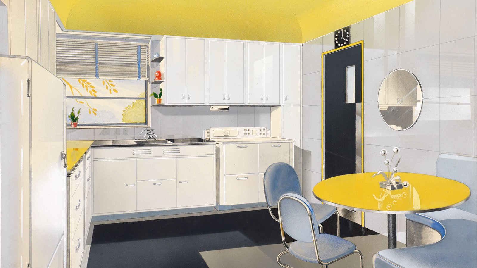 Design drawing, "Dream House" kitchen interior elevations, 1935. Hugo Gnam, designer. The Wolfsonian–FIU, The Mitchell Wolfson, Jr. Collection of Decorative and Propaganda Arts, Promised Gift, WC2003.8.22.19.