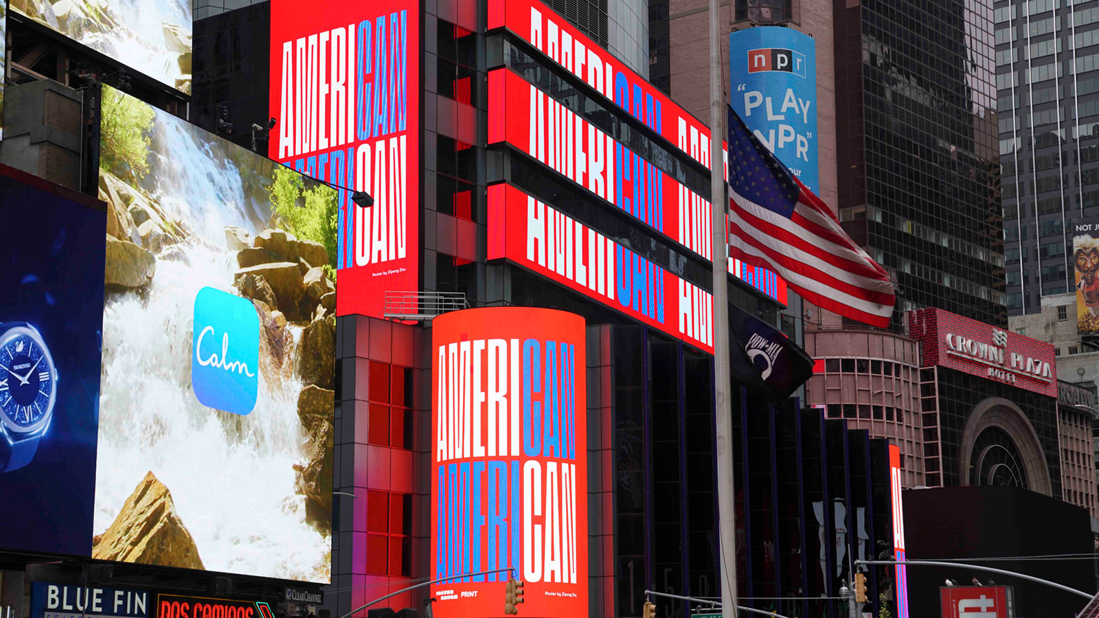 Like many of the other designers, Zipeng Zhu uses bold color and typography to quickly transmit his message of hope. Here, red, white, and blue function as color blocks, highlighting the word "CAN" in "AMERICAN." Though clearly contemporary in design, the message of resiliency hearkens back to patriotic poster designs of the Second World War.