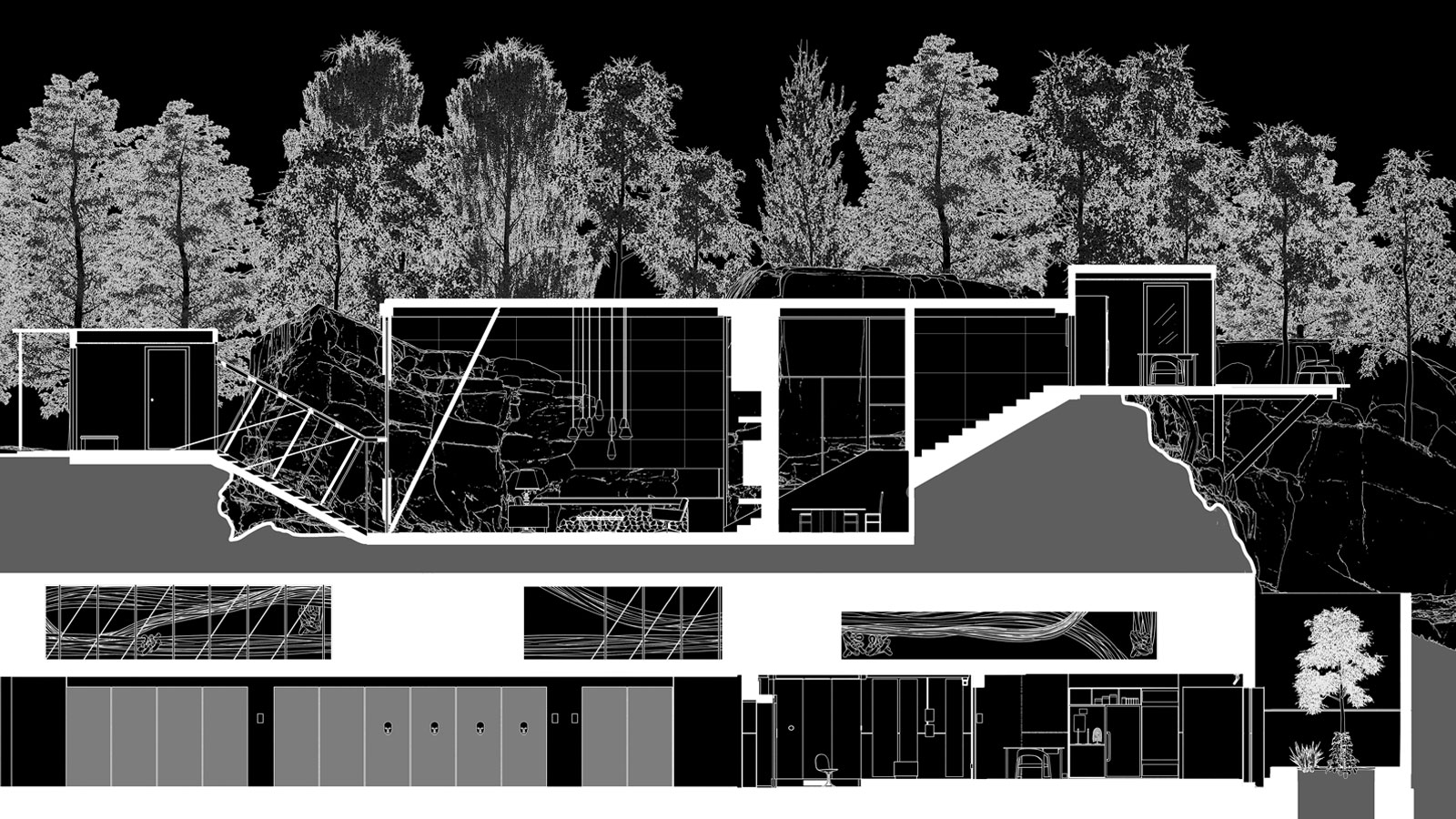 We thought perhaps there is a type of person who is so wealthy they don't need space, they don't need to be visually ostentatious. We then moved toward Nathan's character, and we realized that he just needs enough space. So we started looking for interesting properties in stunning natural environments. We looked at castles in the Swiss Alps, for example. But also, before we went small and remote, we looked at large buildings with interesting design aesthetics, including some museums. We did commit to a museum, which was large and circular, but that arrangement fell apart. Then we chanced on the Juvet Hotel [in Norway]. Although it didn't quite have the narrative and the space we needed, the architects had designed a nearby private residence, and that was the interior of the house with the rock formation. And we realized that both dramatically and practically, we could have some of the rooms be subterranean.