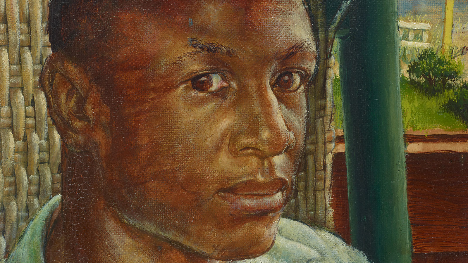 In this powerful self-portrait, the young artist engages the viewer with a look of composure and patient resignation, his intense gaze communicating a sense of knowing far beyond his eighteen years. A painter, printmaker, and sculptor, Wilson was long concerned with issues of racial equality and social justice, striving to create work that represented Black culture with dignity and grace while at the same time drawing attention to issues around social, racial, and economic disparity.