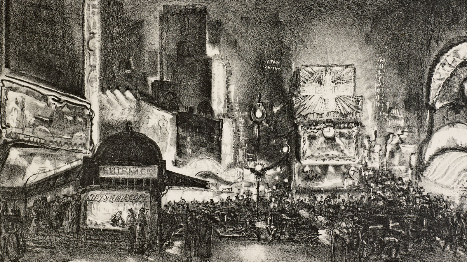 It was during the last decade of the 19th century that Oscar Hammerstein first opened the Olympia theater even before streetlights had been installed on Broadway. In illuminating the façade and marquee of his grand theater with brilliant electric lighting, Hammerstein started a trend taken up by so many other theatrical producers that the area gained international fame as the "Great White Way."