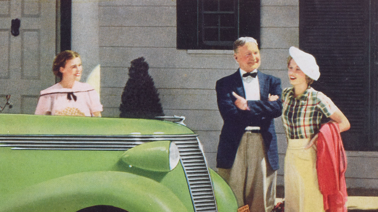 This brochure includes the President, a Studebaker model promoted as redesigned by Helen Dryden in a campaign launched in 1936. Though vague language such as "inspired" or "styled by" in these advertisements leaves the full extent of Dryden's involvement ambiguous, a statement by Studebaker in the trade journal Professional Engineer read, "Exterior styling, interior hardware, upholstery, trim, instrument board, everything that has to do with beauty, appearance and comfort in the Studebaker President of 1936 is the handiwork of Miss Dryden." Contemporary testimonials and Dryden's previous experience designing automobile hardware reinforce her contribution as far more than a marketing gimmick.