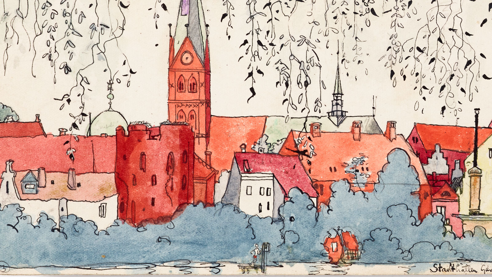 The artist exhibited this same interest in everyday life in other regions of Europe. He traveled most frequently to Germany during the late 1920s through the '30s, always recording his visits with watercolor renderings, snatches of musical notation, and written descriptions of his impressions of cities, towns, and people he encountered. Wainwright frequently convinced locals to pose as models—illustrating every detail of their clothes and immediate surroundings—and he took inspiration for costumes and theater backdrops from the ethnic and regional clothing, customs, styles, and landscapes he observed.